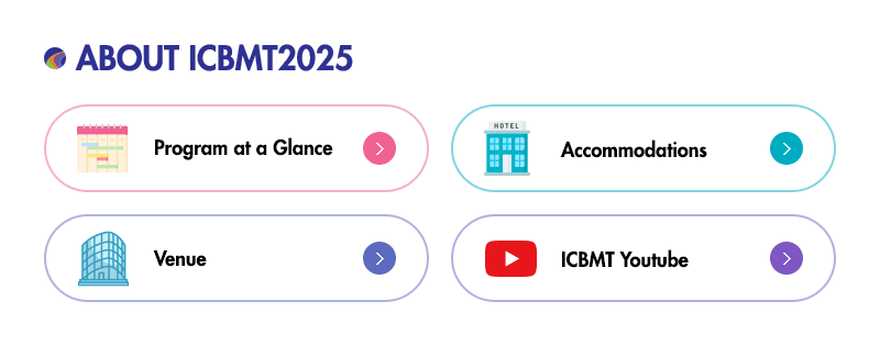 News & Notice Newsletter [Vol. 16] Pre-Registration Closing Soon & Meet Our Luncheon Symposium Speakers! Writer ICBMT 2025 Date 2025-08-22 Hits 212 Having trouble viewing this email? Click here to see it on-line List