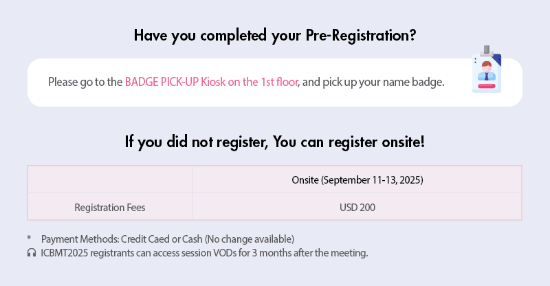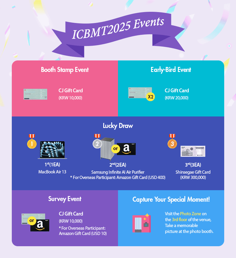 News & Notice Newsletter [Vol. 18] Final Information for ICBMT2025 Participants! (Sep. 11-13, 2025) Writer ICBMT 2025 Date 2025-09-05 Hits 181 Having trouble viewing this email? Click here to see it on-line List